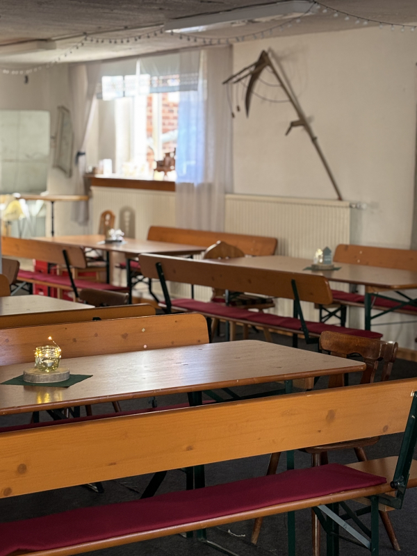 Im Gewölbekeller können Gesellschaften bis zu 45 Personen feiern – „mehr Stimmung hatten nicht mal die Rittersleut“. Alternativ können in unserem Veranstaltungsraum bis zu 80-100 Personen feiern.